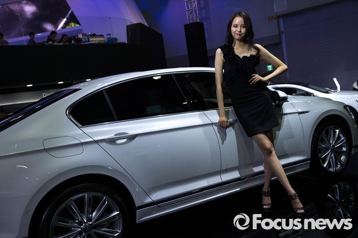 (부산=포커스뉴스) 3일 오후 부산 해운대구 벡스코에서 '2016 부산 국제모터쇼'가 공식 개막한 가운데 레이싱걸이 관람객들을 향해 포즈를 취하고 있다. 이번 국제모터쇼는 오는 12일 까지 계속 된다.
