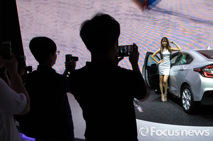 (부산=포커스뉴스) 3일 오후 부산 해운대구 벡스코에서 '2016 부산 국제모터쇼'가 공식 개막한 가운데 레이싱걸이 관람객들을 향해 포즈를 취하고 있다. 이번 국제모터쇼는 오는 12일 까지 계속 된다.