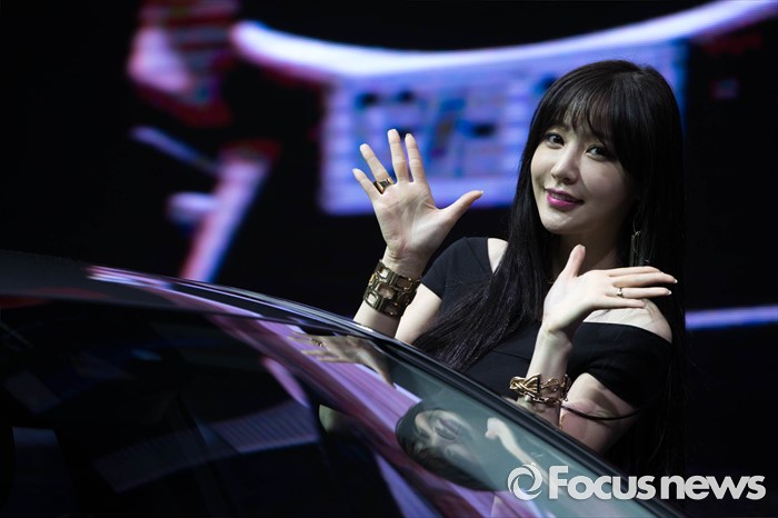 (부산=포커스뉴스) 3일 오후 부산 해운대구 벡스코에서 '2016 부산 국제모터쇼'가 공식 개막한 가운데 레이싱걸이 관람객들을 향해 포즈를 취하고 있다. 이번 국제모터쇼는 오는 12일 까지 계속 된다.