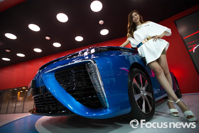 (부산=포커스뉴스) 3일 오후 부산 해운대구 벡스코에서 '2016 부산 국제모터쇼'가 공식 개막한 가운데 레이싱걸이 관람객들을 향해 포즈를 취하고 있다. 이번 국제모터쇼는 오는 12일 까지 계속 된다.