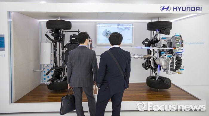 (부산=포커스뉴스) 3일 오후 부산 해운대구에 위치한 벡스코에서 열린 '2016 부산국제모터쇼'에서 관람객들현대차 부스를 살펴보고 있다.