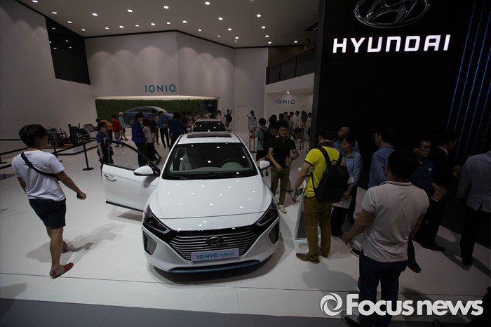 (부산=포커스뉴스) 3일 오후 부산 해운대구에 위치한 벡스코에서 열린 '2016 부산국제모터쇼'에 현대 '아이오닉 하이브리드' 차량이 전시되어 있다.