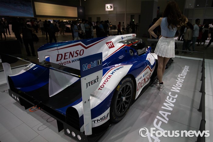 (부산=포커스뉴스) 3일 오전 부산 해운대구에 위치한 벡스코에서 열린 '2016 부산국제모터쇼'에 도요타의 하이브리드 레이싱 머신 'TS040' 차량이 전시되어 있다.