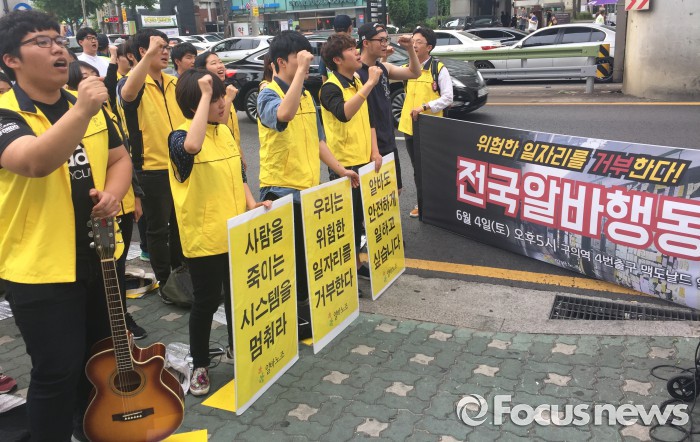 알바노조는 4일 오후 5시10분 구의역 4번출구 앞에서 '전국알바행동'을 열고 '위험한 일자리를 거부한다'는 성명을 냈다.