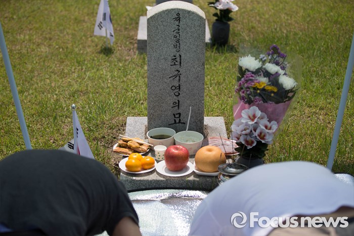 (서울=포커스뉴스) 현충일을 하루 앞둔 5일 오전 서울 동작구 국립서울현충원을 찾은 유족들이 묘역에 참배하고 있다.