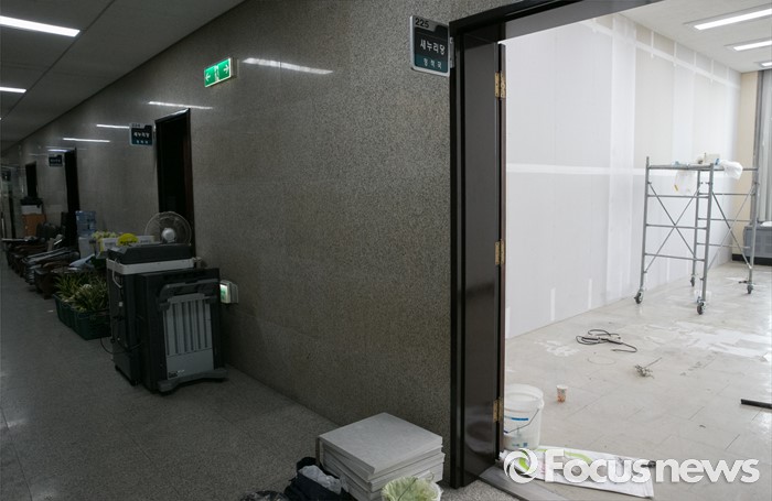 (서울=포커스뉴스) 6일 오전 서울 여의도 국회 본청 내에서 각 정당 사무실의 이전 작업이 진행되고 있다. 의석수에 따라 각 당이 쓰는 공간비율이 달라져 새누리당의 일부 사무실이 축소되고 국민의당 등 다른 정당들이 의석 비율에 따라 사무실 공간을 배분받게 됐다.