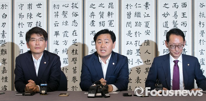 (서울=포커스뉴스) 6일 오후 서울 여의도 국회 귀빈식당에서 열린 20대 국회 원구성 협상 등을 위한 회동에 참석한 김도읍(오른쪽) 새누리당 원내수석부대표, 박완주(왼쪽) 더불어민주당 원내수석부대표, 김관영 국민의당 원내수석부대표가 취재진을 향해 발언하고 있다.