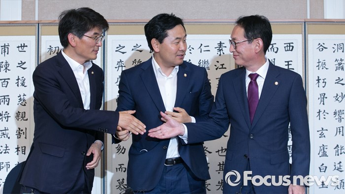 (서울=포커스뉴스) 6일 오후 서울 여의도 국회 귀빈식당에서 열린 20대 국회 원구성 협상 등을 위한 회동에 참석한 김도읍(오른쪽) 새누리당 원내수석부대표, 박완주(왼쪽) 더불어민주당 원내수석부대표, 김관영 국민의당 원내수석부대표가 인사하고 있다.