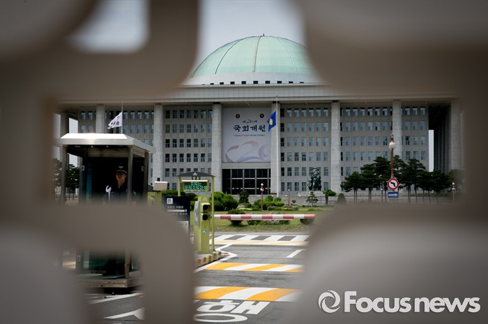 (서울=포커스뉴스) 20대 국회 원구성 법정 시한을 하루 앞두고 여야 공방이 이어지고 있는 6일 오후 서울 여의도 국회 정문 사이로 본청 모습이 보이고 있다.