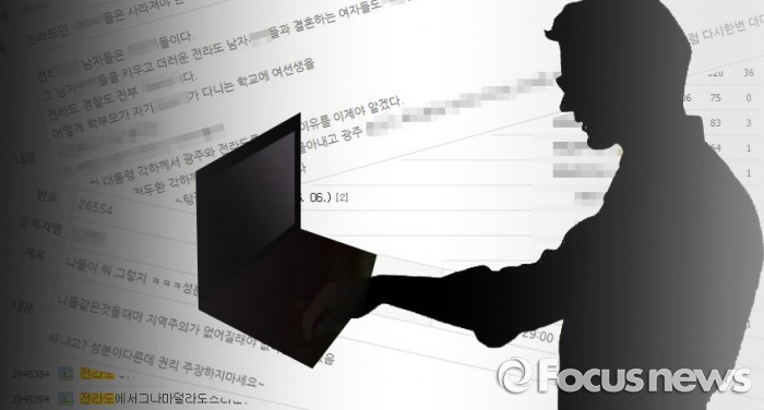 (서울=포커스뉴스) "전라도 때문에 지역주의가 없어질 수가 없다. 성분이 다른데 권리 주장하지 마라." "전라도 DNA를 타고난 만큼 정상이 아니다. 오늘이라도 청소하는게 좋아."