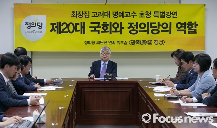 (서울=포커스뉴스) 7일 오전 서울 여의도 국회 의원회관에서 열린 정의당 광폭경청 초청강연에 참석한 최장집 고려대 명예교수가 발언하고 있다.