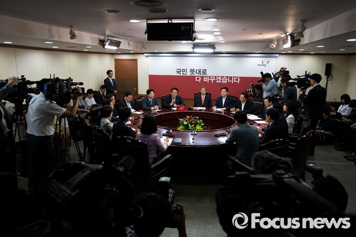 (서울=포커스뉴스) 정진석 새누리당 원내대표가 7일 오전 서울 여의도 새누리당사에서 열린 '혁신비상대책위원회의'에 참석해 모두발언 하고 있다.