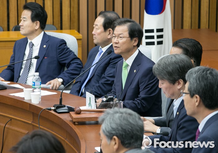 (서울=포커스뉴스) 7일 오전 서울 여의도 국회에서 열린 국민의당 의원총회에 참석한 천정배(왼쪽 세번째) 공동대표가 모두발언을 하고 있다.