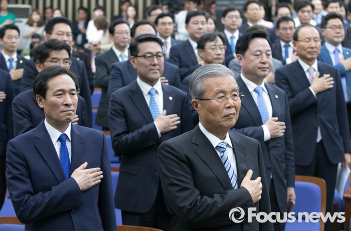 기동민 원내대변인은 "자율투표의 선례가 없었던 것도 아니고 교착상태를 풀 수 있는 명분이라고 생각한다"고 강조했다.7일 오전 서울 여의도 국회에서 열린 더불어민주당 의원총회에 참석한 김종인 비대위 대표, 우상호 원내대표 등 의원들이 국기에 대한 경례를 하고 있다. 2016.06.07 박동욱 기자