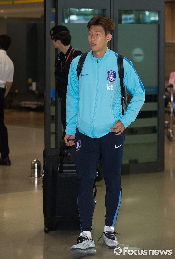 (인천공항=포커스뉴스) 유럽 원정에 나서 두 차례 평가전을 치러 1승 1패(스페인 1-6패, 체코 2-1승)를 거둔 대한민국 축구 국가대표팀 손흥민이 7일 오후 인천국제공항을 통해 귀국하고 있다.