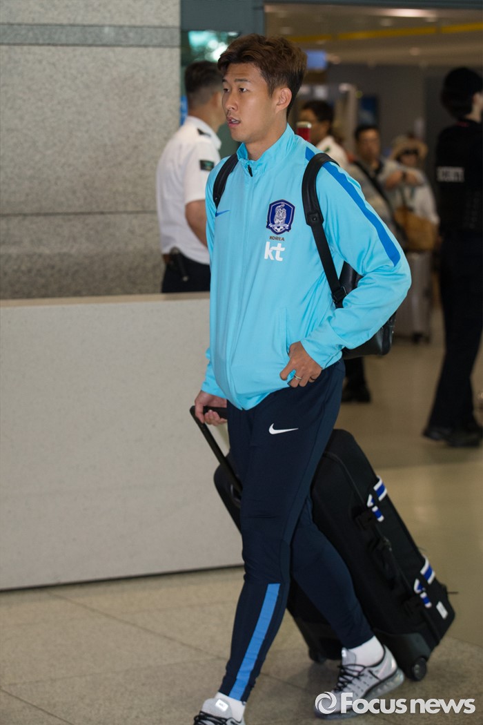 (인천공항=포커스뉴스) 유럽 원정에 나서 두 차례 평가전을 치러 1승 1패(스페인 1-6패, 체코 2-1승)를 거둔 대한민국 축구 국가대표팀 손흥민이 7일 오후 인천국제공항을 통해 귀국하고 있다.