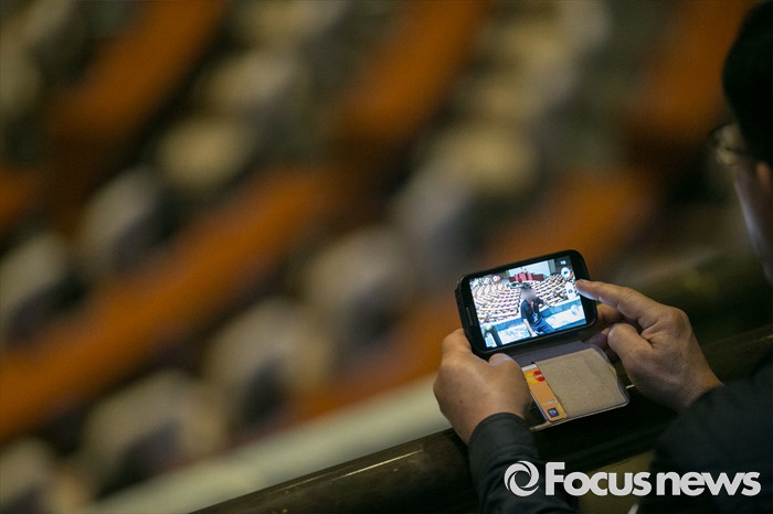 (서울=포커스뉴스) 20대 국회 원구성이 난항을 겪으며 개원식 등이 지연되고 있는 7일 오후 서울 여의도 국회 본회의장을 찾은 참관객들이 기념촬영을 하고 있다.