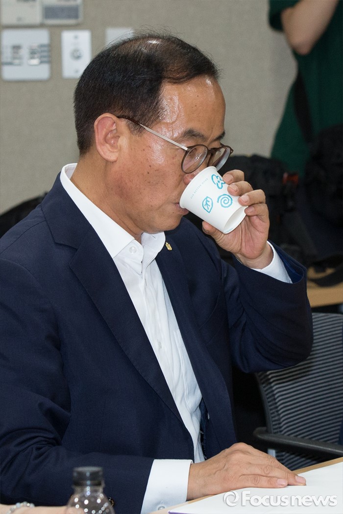 (세종=포커스뉴스) 7일 오후 세종시 정부세종청사 교육부 대회의실에서 열린 시·도 도서벽지 교원근무환경 개선대책협의에 김영증 전남교육청 교원인사과장이 참석해 목을 축이고 있다.