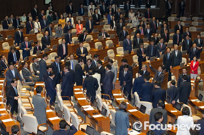 (서울=포커스뉴스) 9일 오후 서울 여의도 국회에서 열린 20대 국회 첫 본회의에서 전반기 국회의장으로 선출된 정세균 더불어민주당 의원이 단상으로 향하며 의원들의 축하를 받고 있다.