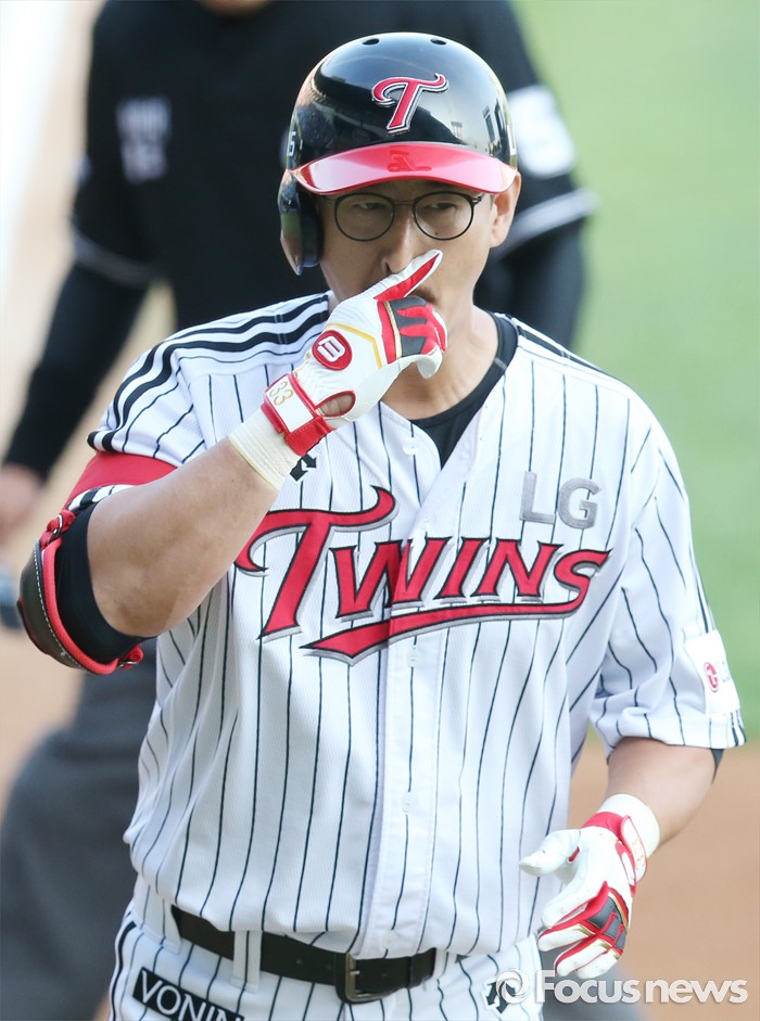 | △ 선두타자 홈런 친 LG 박용택 |