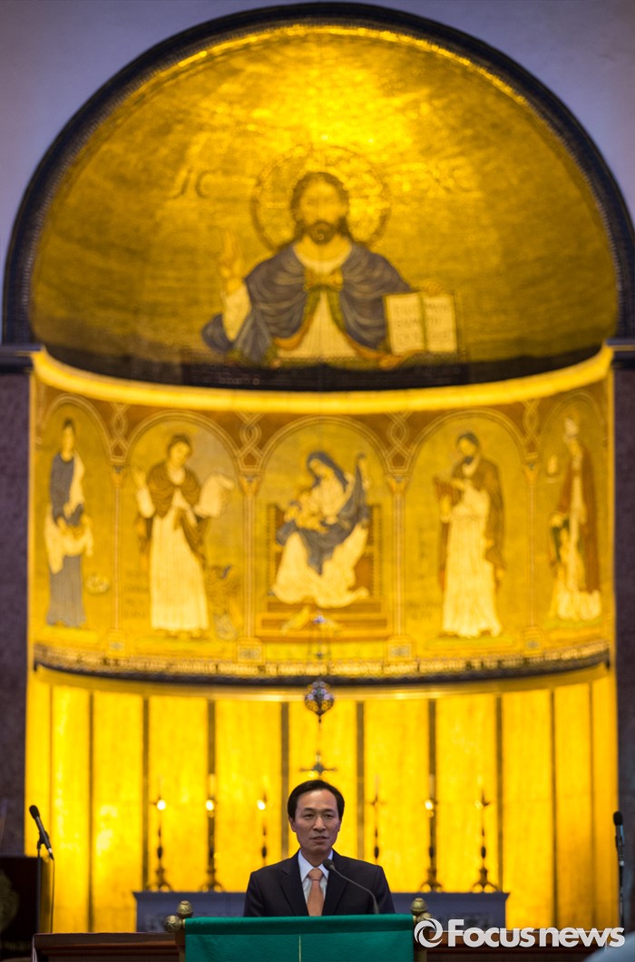 (서울=포커스뉴스) 10일 오전 서울 중구 정동 대한성공회 서울주교좌성당에서 열린 6월항쟁 29주년 기념식에 참석한 우상호 더불어민주당 원내대표가 연대사를 하고 있다.