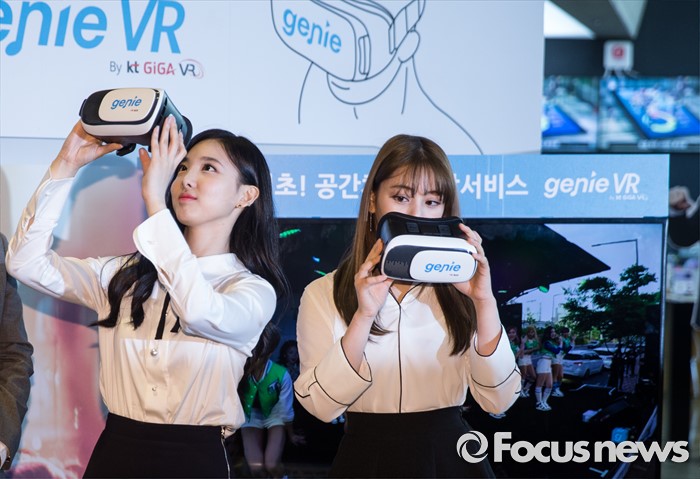 걸그룹 트와이스 멤버 지효와 나연이 음악전문 VR 서비스에 기대감을 내비쳤다. 9일 서울 종로구 광화문 KT스퀘어에서 진행된 지니 VR 론칭 기념 간담회에서다.