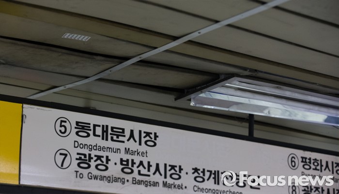 (서울=포커스뉴스) 9일 오전 서울 지하철 종로5가역 지하상가와 출입구를 연결하는 통로의 천장이 훼손되어 있다. 플라스틱 소재로 마감된 천장은 움푹 패어있었으며 휘어지거나 깨진 곳도 많아 위태로워 보인다.