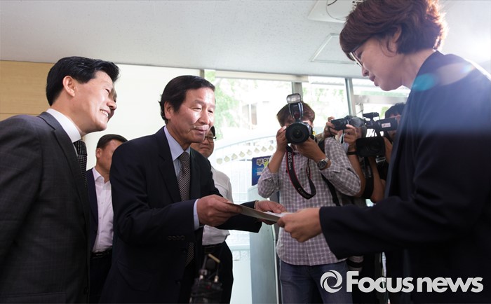 | △ 방북 신청서 제출하는 정기섭 위원장 |