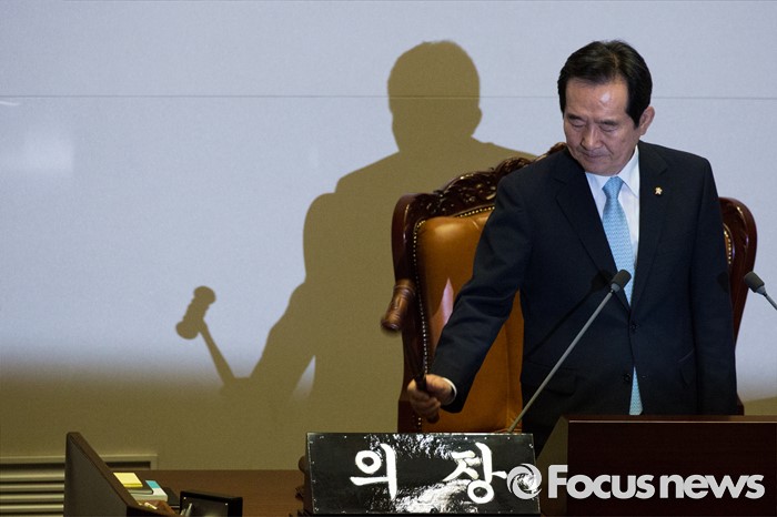 (서울=포커스뉴스) 9일 오후 서울 여의도 국회에서 열린 본회의에서 20대 국회 전반기 국회의장으로 선출된 정세균 더불어민주당 의원이 의사봉을 두드리고 있다.