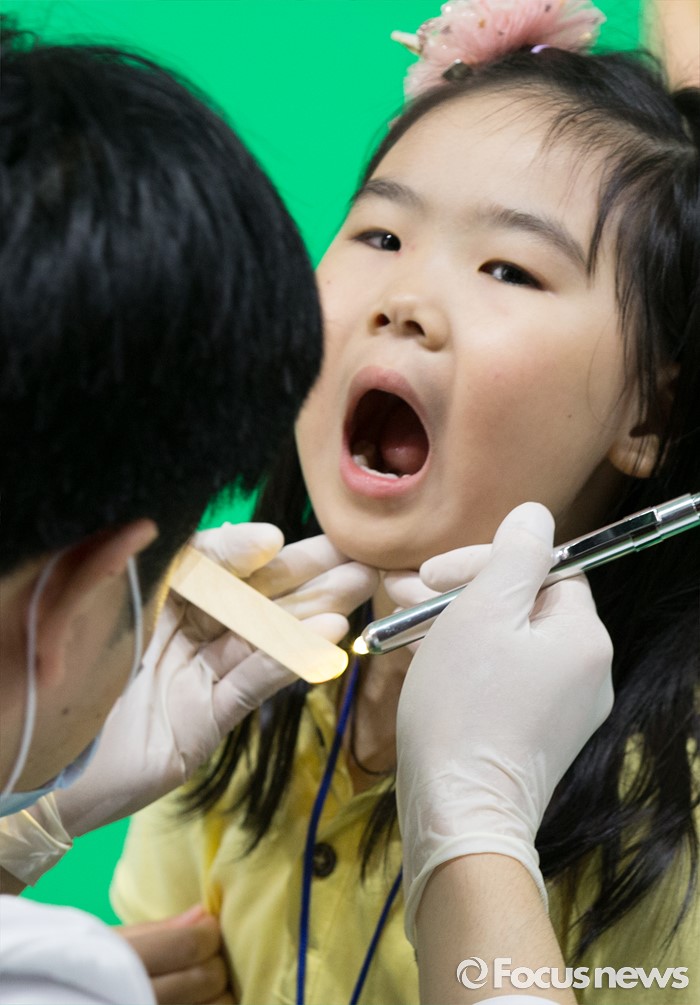 (대전=포커스뉴스) 9일 오전 구강보건의 날을 맞아 대전치과의사회 소속 치과의사들이 대전 서구 대전과학기술대학교에서 어린이집과 유치원 아동 5000여 명을 대상으로 무료 구강검진을 하고 있다.