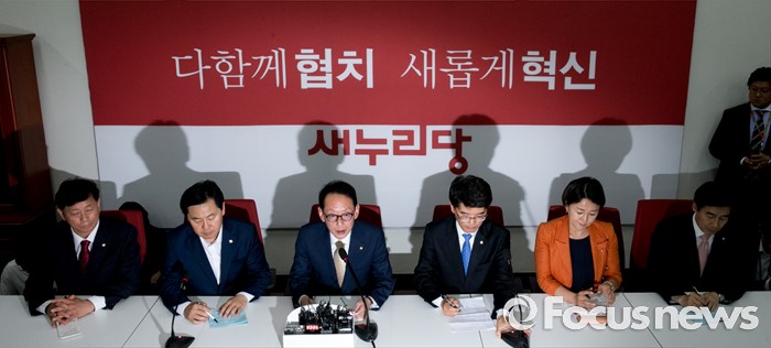 (서울=포커스뉴스) 여야 3당이 20대 국회 원구성에 합의한 8일 오후 서울 여의도 국회 새누리당 원내대표실에서 김도읍 새누리당 원내수석부대표, 박완주 더불어민주당 원내수석부대표, 김관영 국민의당 원내수석부대표가 3당 원내지도부 회동 결과를 발표하고 있다. 왼쪽부터 김명연 새누리당 원내대변인, 김관영 국민의당 원내수석부대표, 김도읍 새누리당 원내수석부대표, 박완주 더불어민주당 원내수석부대표, 이재정 원내대변인, 이용호 국민의당 원내대변인.