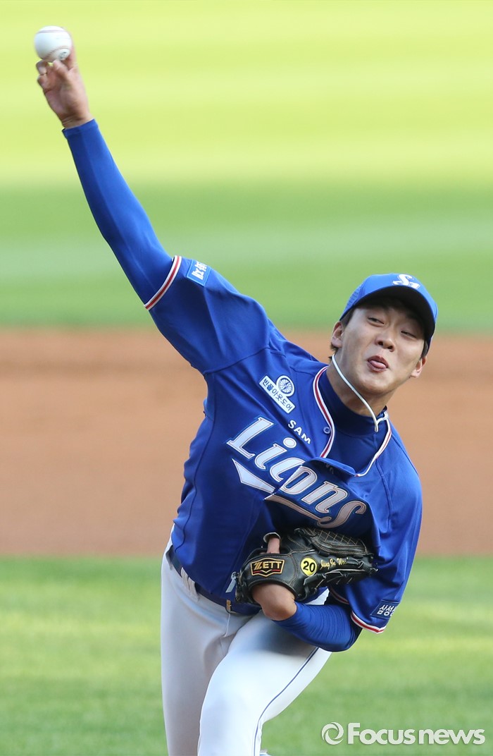 (서울=포커스뉴스) 8일 서울 잠실구장에서 열린 2016 프로야구 삼성-LG 경기에서 1회말 삼성 선발투수 정인욱이 투구하고 있다.