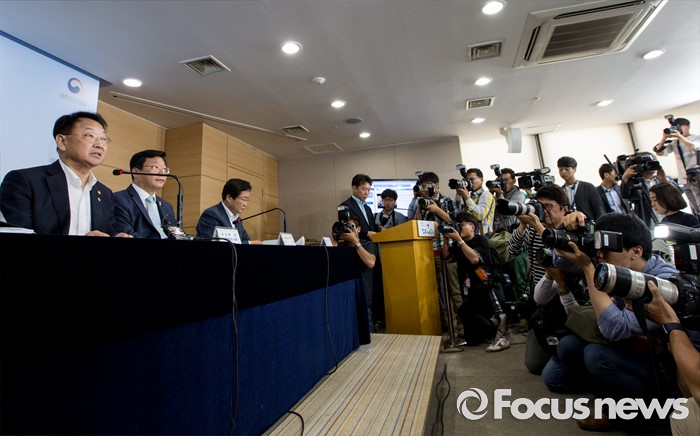 (서울=포커스뉴스) 8일 오전 서울 종로구 정부서울청사에서 유일호 부총리 겸 기획재정부 장관이 구조조정 추진현황 및 계획에 대해 발표하고 있다.