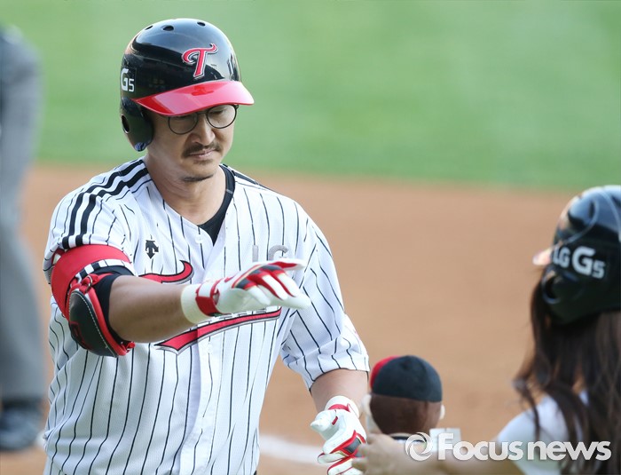 (서울=포커스뉴스) 8일 서울 잠실구장에서 열린 2016 프로야구 삼성-LG 경기 1회말 LG 톱타자 박용택이 우월 홈런을 치고 홈인하고 있다.