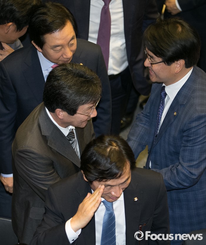 (서울=포커스뉴스) 9일 오후 서울 여의도 국회에서 열린 20대 국회 첫 본회의에 참석한 유승민 무소속 의원이 동료 의원들과 인사하고 있다.