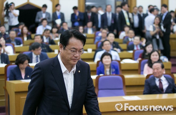 | △ 굳은 표정의 정진석 |