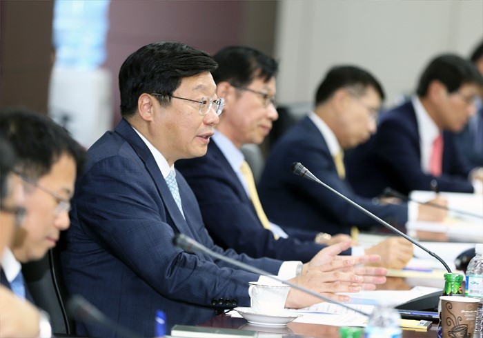 (서울=포커스뉴스) 주형환 산업통상자원부 장관이 8일 오후 서울 무역보험공사 대회의실에서 플랜트 업계 CEO 간담회를 주재하고 있다. 이날 간담회에는 최광철 플랜트협회장(SK건설 대표), 임병용 GS건설 대표, 박증흠 삼성엔지니어링 대표, 박정환 포스코엔지니어링 대표, 최광호 한화건설 대표, 정수현 현대건설 대표, 강영국 대림산업 대표, 홍기표 대우건설 부사장, 김헌탁 두산중공업 부사장, 조용두 포스코건설 본부장, 김영학 무역보험공사 사장, 최성환 수출입은행 부행장, 염동관 플랜트산업협회 부회장이 참석했다. <사진제공=산업통상자원부>