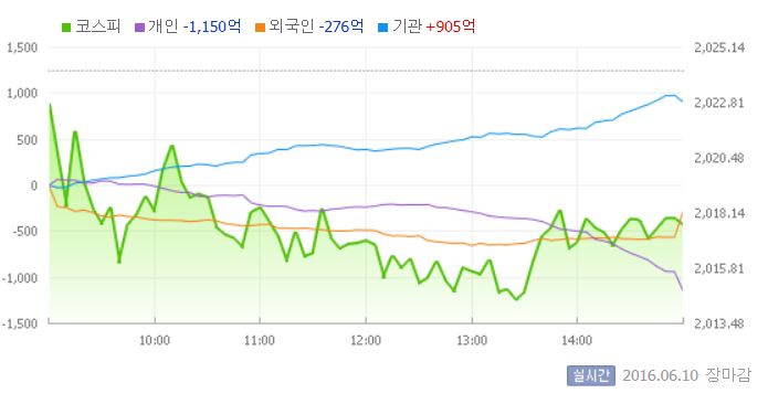 일본 닛케이225지수는 전일 대비 0.4% 떨어진 1만6601.36으로 마감했다. 중국과 대만 증시는 단오절을 맞아 10일 휴장했다.10일 유가증권시장 <그래픽출처=네이버>