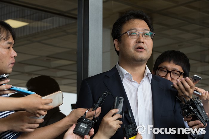 (서울=포커스뉴스) 세월호 특조위 윤천우 조사2과장이 8일 오전 서울 서초구 서울중앙지방검찰청에서 산케이신문 전 서울지국장 사건 관련 자료 확보를 위해 실지조사에 나섰다 검찰 측의 거부로 무산되자 지검을 나와 취재진의 질문에 답하고 있다.