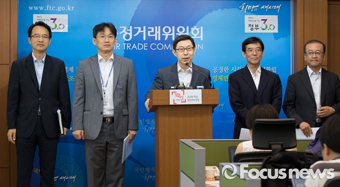 (세종=포커스뉴스) 신영선 공정거래위원회 사무처장이 8일 오전 세종시 정부세종청사 공정위 기자실에서 대기업집단 지정제도 개선방안에 대한 브리핑을 하고 있다. 왼쪽부터 박춘호 기획재정부 법인세제과장, 이병원 기획재정부 기업환경과장, 신영선 사무총장, 김병근 중소기업청 중소기업정책국장, 원동진 산업통상자원부 산업정책관.
