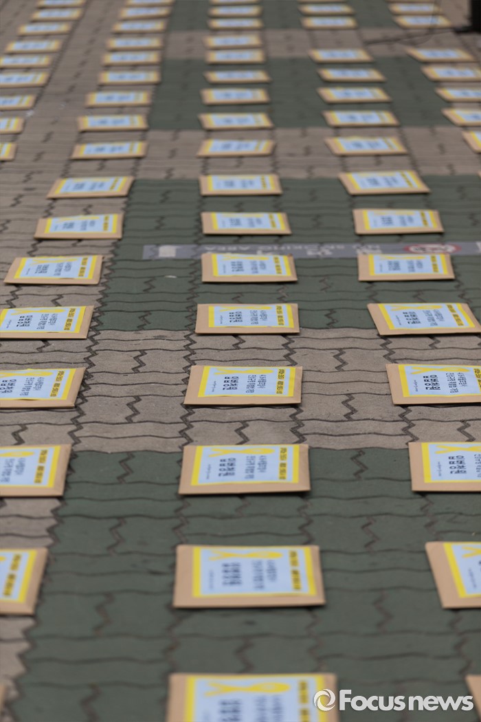 (서울=포커스뉴스) 8일 오전 서울 여의도 국회 앞에 세월호 진상규명 특별법 개정 입법청원서가 놓여 있다.