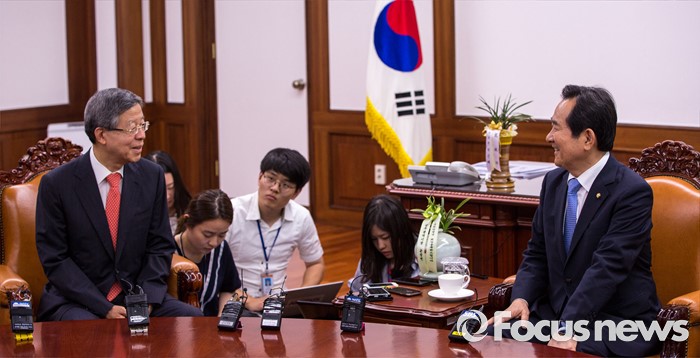 (서울=포커스뉴스) 정세균(오른쪽) 국회의장이 10일 오후 서울 여의도 국회에서 김희옥 새누리당 혁신비상대책위원회 위원장과 면담 하고 있다.