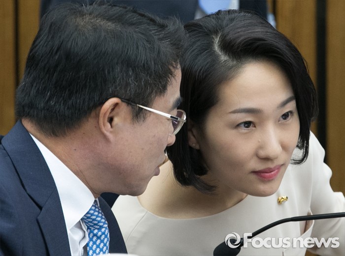 (서울=포커스뉴스) 9일 오전 서울 여의도 국회에서 국회 부의장 후보 선출을 위해 열린 국민의당 의원총회에 참석한 김수민(오른쪽) 의원이 동료 의원과 대화하고 있다. 김 의원은 20대 총선 당시 선거 홍보물 제작업체 등에 일감을 주고 업체들로부터 억대의 리베이트를 받은 혐의(정치자금법 위반) 등으로 중앙선거관리위원회로부터 고발당한 것으로 전해졌다.