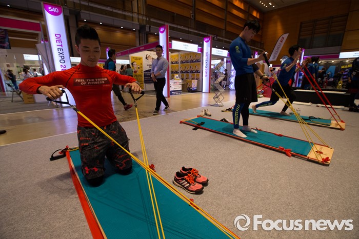 (서울=포커스뉴스) 9일 오후 서울 강남구 코엑스 D홀에서 열린 '2016 세계 다이어트 엑스포'에서 시민들이 건강보조기구를 체험하고 있다. 기간은 6.9~6.11일 까지 진행된다.