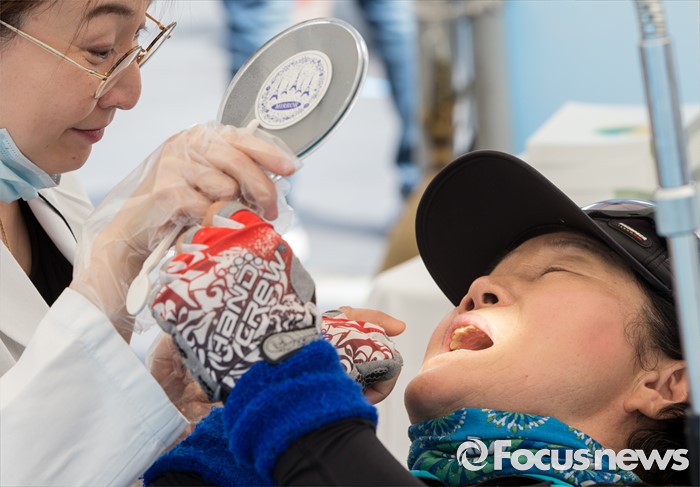 (서울=포커스뉴스) 9일 오전 서울 청계광장에서 열린 제1회 서울시민 구강보건의 날 기념행사에 참석한 시민들이 무료 치아검진을 받고 있다.