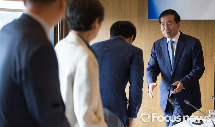 | △ 각계 위원들과 인사하는 박원순 서울시장 |