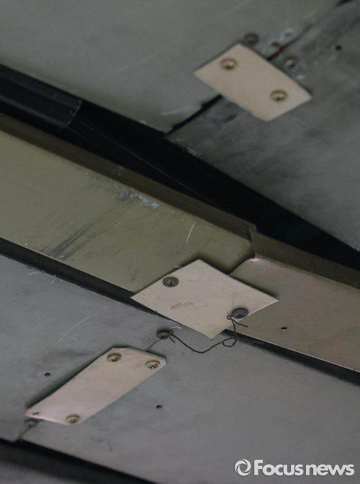 (서울=포커스뉴스) 9일 오전 서울 지하철 종로5가역 지하상가와 출입구를 연결하는 통로의 천장이 훼손돼 임시방편으로 철제 구조물로 조치 되어 있다. 플라스틱 소재로 마감된 천장은 움푹 패어있었으며 휘어지거나 깨진 곳도 많아 위태로워 보인다.