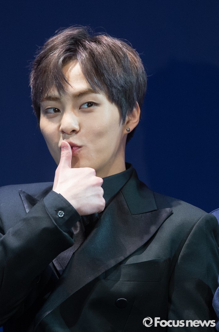 (서울=포커스뉴스) 8일 오전 서울 강남구 코엑스 아티움에서 열린 아이돌 그룹 엑소의 3집 앨범 'EX'ACT' 발표 쇼케이스에 참석한 멤버 시우민이 포토타임을 갖고 있다.
