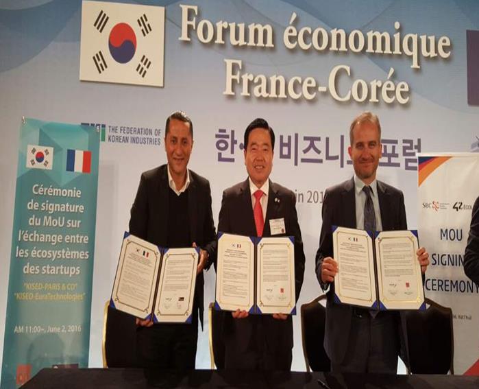 (서울=포커스뉴스) 중소기업청(이하 중기청)과 창업진흥원(이하 창진원)은 오는 9월1일부터 시작하는 '한-불 창업자 교류 프로그램'을 추진하기 위해 '한-불 비즈니스 포럼'에서 프랑스 창업 기관인 파리스앤코(Paris&co), 유라테크놀로지(Euratechnologies)와 업무협약(MOU)을 체결했다고 7일 밝혔다.