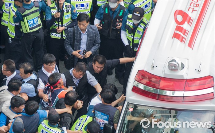 하지만 경찰이 이들을 곧바로 연행해 구급차에 태워 병원으로 이송하는 과정에서 금속노조 조합원들이 반발하는 등 충돌이 일어났다.